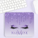 Modern Elegant Fashionable and Trendy Violet Purple Glitter Mouse Pad personalized with your Monogram Initial and Name. Sparkling Eyelashes. Dripping Glitter with sparkles.