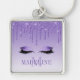 Modern Fashionable Purple Monogram Glitter Lashes Keychain