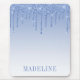 Modern Elegant Fashionable and Trendy Dusty Blue Glitter Mouse Pad personalized with your Name. Dripping Glitter with sparkles.