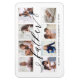 Send a beautiful personalized gift to your dad (father) that he'll cherish forever. Special personalized photo collage magnet to display your own special family photos and memories. Our design features a simple 8 photo collage grid design with "father" designed in a beautiful handwritten black script style. Each photo is framed and centered within a simple gold-colored border. Customize with family names.