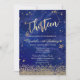 Modern Faux Gold Diamonds Stars Blue Thirteen Invitation