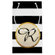 Modern Faux Gold Foil Black White Stripe Monogram Small Gift Bag