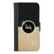 Modern faux Gold Glitter Black Leather Monogram iPhone Wallet Case