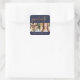 Modern and chic sticker with faux gold graduate script typography, two photos, name and class year in white text on a navy blue background.