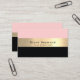 Nice contact card to promote yourself with elegance... front side: large faux gold, blush pink and black stripes with custom name and profession; back: lines of text (business name, phone, email and address) printed on the same striped background.