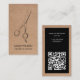 Modern Faux Kraft Black QR Code Scissors Salon Business Card