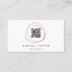 Striking business cards feature an abstract element in faux rose gold, encircling a customizable QR code. Personalize with two custom text fields beneath for your name and title or business name. Add your full contact details to the reverse side. Suitable for any occupation; example shown for hair and makeup artists. NOTE: THERE IS NO GOLD FOIL ON THIS PRODUCT. The rose gold effect is created using subtle color variations that mimic the look of foil.