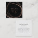 Simple and striking black business cards in a unique square shape leave a modern impression. Front side features an abstract element in faux rose gold, encircling two custom text fields for your name and title or business name. Add your full contact details to the reverse side. Suitable for any occupation; example shown for hair and makeup artists. NOTE: THERE IS NO GOLD FOIL ON THIS PRODUCT. The rose gold effect is created using subtle color variations that mimic the look of foil.