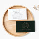 Striking business cards feature an abstract element in faux rose gold, encircling your initials or monogram in modern calligraphy script, on a rich hunter green background. Personalize with two custom text fields beneath for your name and title or business name. Add your full contact details to the reverse side. Suitable for any occupation; example shown for hair and makeup artists. NOTE: THERE IS NO FOIL ON THIS PRODUCT. The rose gold effect is created using subtle color variations that mimic the look of foil.