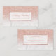 Modern faux rose gold glitter with elegant white marble with faux rose gold frame ombre makeup artist business card.