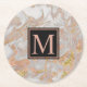 Modern Faux Rose Gold Marble Swirl Monogram Round Paper Coaster