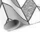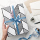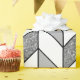 This wrapping paper features an elegant chevron design with a geometric herringbone pattern in white and faux silver glitter with black lines.