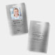 Custom Modern Faux Silver Metallic Corporate Photo ID Badge. Personalize this corporate ID card badge with your employees name, position, photo and your company logo on the front side and your custom info text on the back side. The employee photo works best in square format. Your logo works best as a PNG square format with transparent background. The placeholder logo you see on the badge will be completely replaced with your own logo design.
