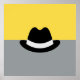 Stylish modern and artistic design features black fedora hat with white band on a gray and yellow colorblock background