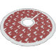 Elegant festive red Christmas tree skirt with modern white pines and snowflakes and white borders