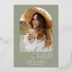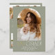 This modern fete foil green yay grad photo graduation announcement card is the perfect simple high school or college grad announcement. The design features elegant boho typography with a touch of sophisticated style in muted and minimalist light sage green with luxurious pressed gold foil accents.