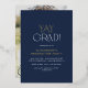 Modern Fete Foil Navy Yay Grad Photo Graduation Foil Invitation