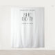 This modern fete she did it graduation photo backdrop is perfect for a simple grad party. The design features elegant boho typography with a touch of sophisticated style in minimalist black and white.
