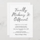 This modern wedding invitation features the elegant phrase “Finally Making It Official” in stylish script typography. The design is clean and timeless, with a white background and balanced text layout. It is perfect for couples who want a simple, modern, and classy look for their wedding stationery. Ideal for formal, minimalist, or contemporary weddings. The invitation is fully customizable with names, date, time, and venue details.