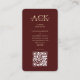 Modern Firefighter Emergency Disaster Rescue Dark Red Maroon Monogram Name initials business card with QR code