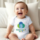 This fun first birthday bodysuit features colorful "Birthday Boy" text with a bold number one surrounded by blue, green, and teal balloons. A festive, personalized outfit for the birthday boy's big day and a great choice for smash cake photos. All text is fully customizable.