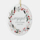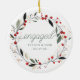 Modern First Christmas Engaged Mistletoe Wreath Ceramic Ornament