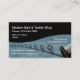 Modern fishing theme business cards designed with a cool image of a fishing rod and an organized layout for a bait and tackle shop, fishing club, or fishing class.