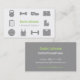 A modern, contemporary, professional and stylish business card with familiar fitness icons in gray and white colour palette. They include kettlebell, dumbbell weights, sports shoe, shorts, clipboard on fitness plan, water bottle and apple to symbolize hydration, diet and nutrition, exercise gym ball, workout singlet and measuring scale. Great for freelance personal gym trainers, fitness instructors and anyone in the health and fitness industry. Personalize easily with your business details.