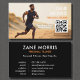 Stand out with this bold and modern personal trainer business card design. Featuring a motivational photo layout, scannable QR code, and clean contact details, it's built to impress new clients and grow your brand with confidence.