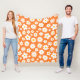 Whimsical modern fleece blanket featuring scattered flat white daisies with sunflower gold centers over a bold orange background. Contact for assistance in customizing or for personalization.