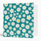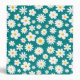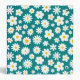 Whimsical modern floral design featuring scattered flat white daisies with sunflower gold centers over a bold teal blue background. Contact for assistance in customizing or personalizing.