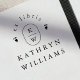 A timeless personalized bookplate stamp that exudes classical taste: your monogram initials appear in central place within a rounded frame and separated by a horizontal line divider. The entire design uses a single refined serif font with ample spacing to allow for crisp, flawless impressions. A perfect blend of tradition and modernity for discerning bibliophiles.