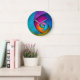 Modern Floral Abstract Art Pink Blue Pattern #17 Large Clock
