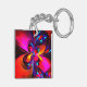 Modern Floral Abstract Art Red Blue Pattern #07 Keychain