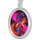 Modern Floral Abstract Art Red Blue Pattern #07 Silver Plated Necklace