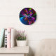 Modern Floral Abstract Art Red Blue Pattern #15 Large Clock