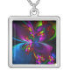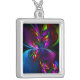 Modern Floral Abstract Art Red Blue Pattern #15 Silver Plated Necklace