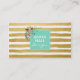 Modern Floral Aqua and Gold Foil Stripes Business Card