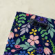 Floral with floating foliage, pretty stylized flowers, leaves, berries, acorns and accent polka dots in shades of green, blue, pink, purple and yellow with accents in orange, red and brown. Set on dark blue background. Use the templates to personalize with your name or message in pink font on a dark blue stripe.