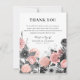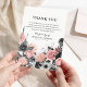 Personalized funeral thank you card to send out to friends and family who have shown you love and kindess during your time of grief. Featuring a classic white background and a display of pink and black watercolor flowers and foliage. All text is easy to customize by using the template provided.