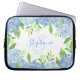 Modern Floral Blue Hydrangea Watercolor Monogram Laptop Sleeve