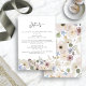 Modern Floral Botanical Wedding Enclosure Card. Provide your guests with essential wedding details in style with this beautifully designed details card. Featuring pressed boho watercolor florals in creamy ivory, sage green, burgundy, and dusty blue, it exudes charm and sophistication. The coordinating pattern on the back enhances its elegant design, seamlessly tying it into the rest of your suite. A perfect blend of practicality and artistry, this card ensures every detail of your big day feels thoughtful and unforgettable.