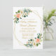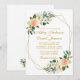 Modern Floral Coral Gold Geometric Frame Wedding Invitation