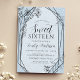 Modern Floral Dusty Blue Glitter Sweet 16 Invitation