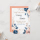 STYLE: Romantic and modern floral design with blush pink and deep navy-blue flowers, complemented by delicate beige leaves and gold geometric accent lines. BACK of Card: plain light coral color. TEXT: easy to customize with your own. See MATCHING Items in “Floral – Minimalist & Modern” Collection in Vera Bond Art Store.