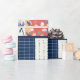 This eye-catching paper pattern combines contemporary florals, gridlines, and polka dots in a bold patchwork design. Featuring a striking palette of navy, coral, mustard, and cream, each square is a celebration of vibrant patterns and textures. The geometric elements and floral accents create a balanced mix of modern aesthetics and natural charm. Perfect for gift wrapping, scrapbooking, or creative DIY projects, this design is versatile and stylish, bringing energy and personality to any creation.