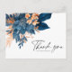Modern Floral Indigo Rust Wedding Thank You Postcard