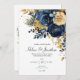 Modern Floral Navy Blue Gold Elegant Wedding Invitation