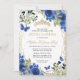 Modern Floral Navy Blue Gold Tiara Quinceañera Invitation