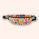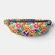 This stylish fanny pack features a funky floral pattern in groovy colors and your name on the top. The bag features an adjustable black waist strap, a zip closure and measures 14.5" x 6". Mesh divider, three card holders, and a zippered internal pocket inside, there is also a smaller zippered pocket on the back. MATCHING items in our collection.